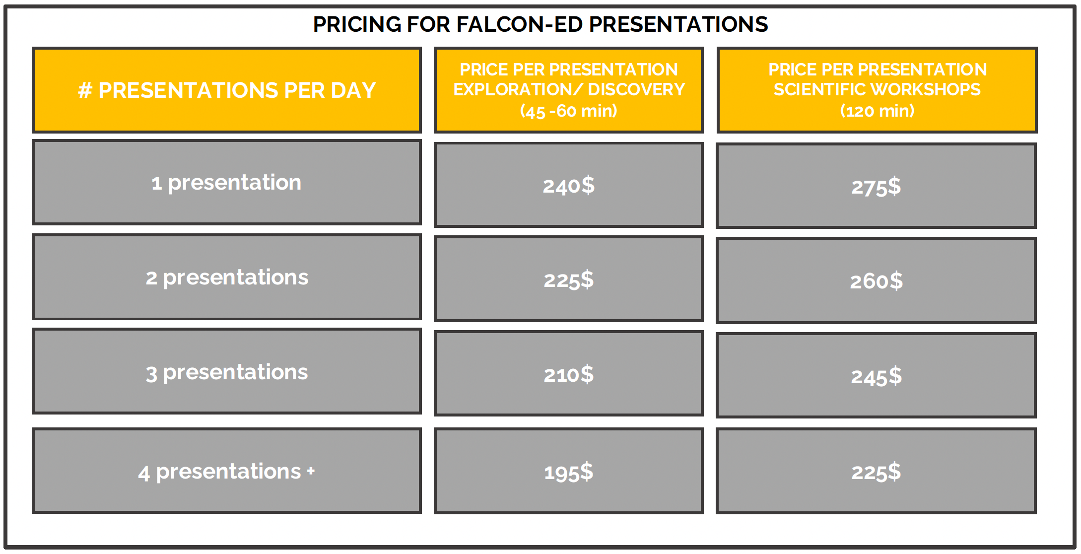 Falcon-Ed presentations are recognized by the subsidized Quebec government program Culture à l’école.